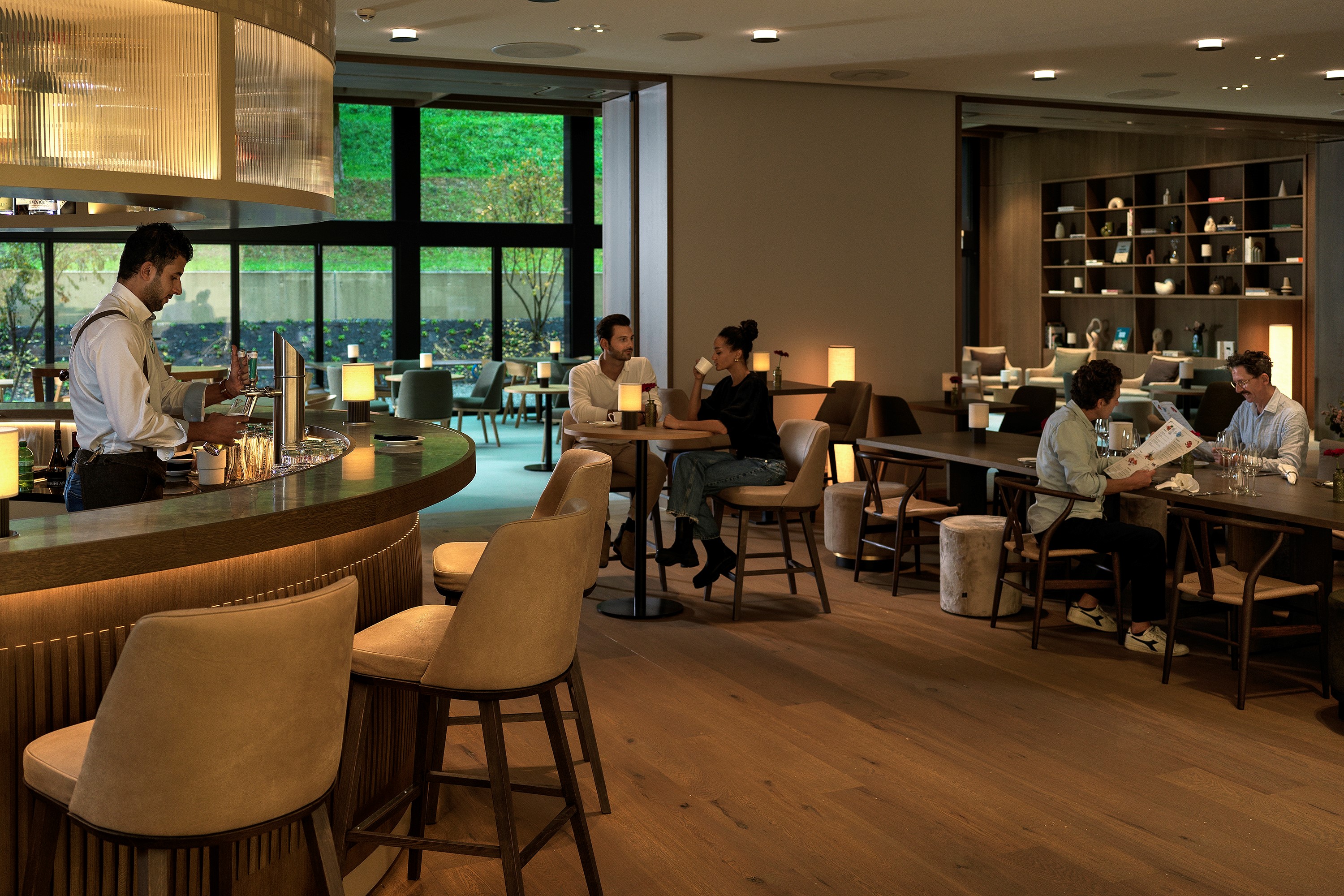 a contemporary dining experience with elegant interiors and innovative dishes that celebrate Swiss